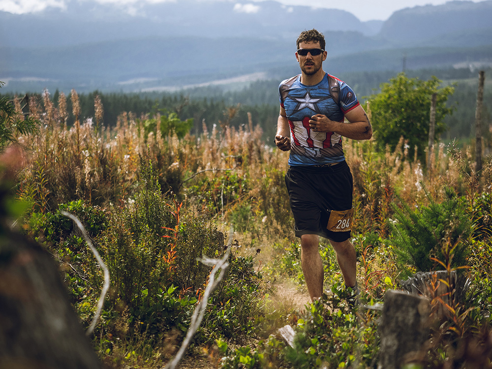 Just a few kilometres into our Standard bike course in 2019, Nolan Hunder’s seat post sheared off and he was left straddling a bare post rather than a cushy saddle. Rather than throw in the towel, however, he completed the entire 23-km course without a saddle and even headed out to complete the 9.5-km run when he arrived at T2. When he arrived back at Race Central just over an hour later, he had earned the respect of his fellow competitors, most of whom had by then heard rumours of “some guy dressed like Captain America who’s riding without a saddle.”